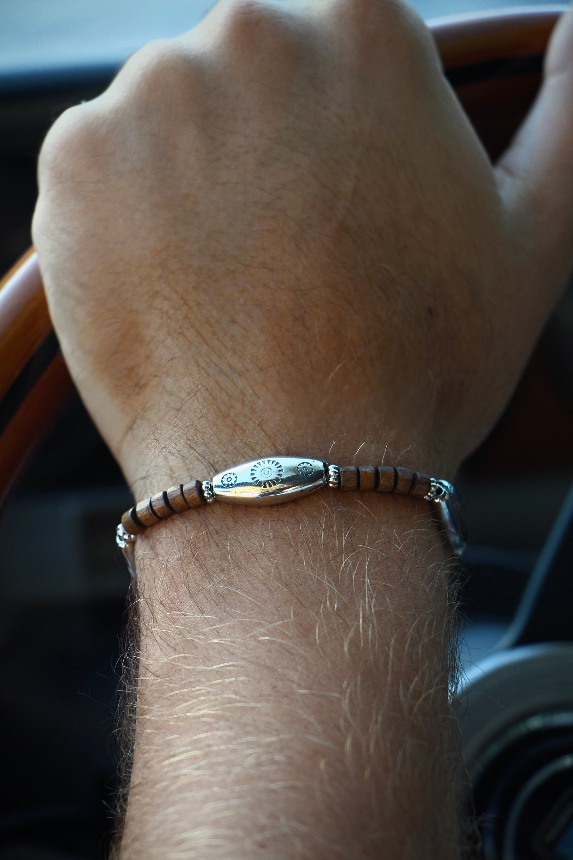צמיד חרוזי עץ וכסף וינטג׳ לגבר