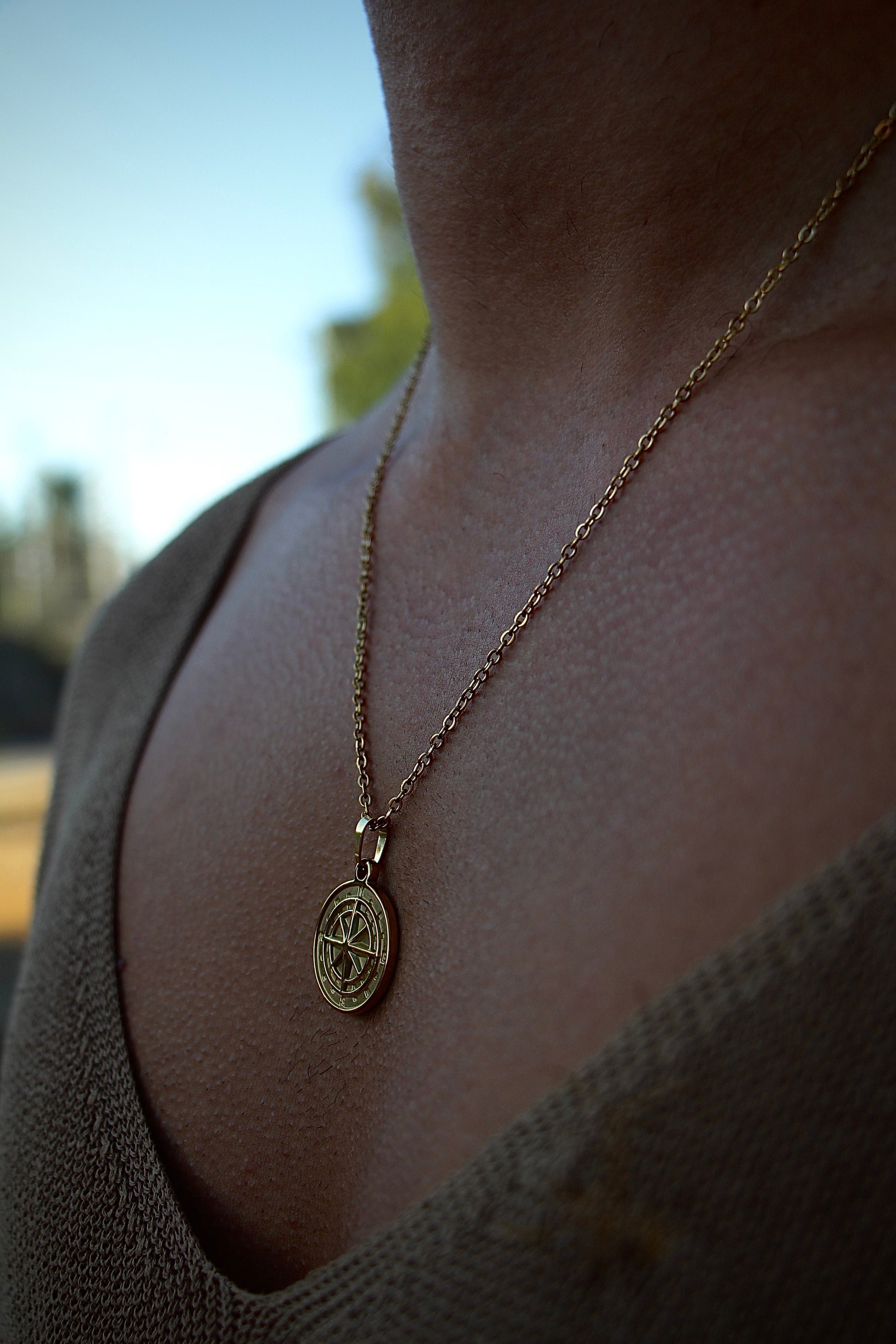 שרשרת מצפן לגבר - צבע זהב